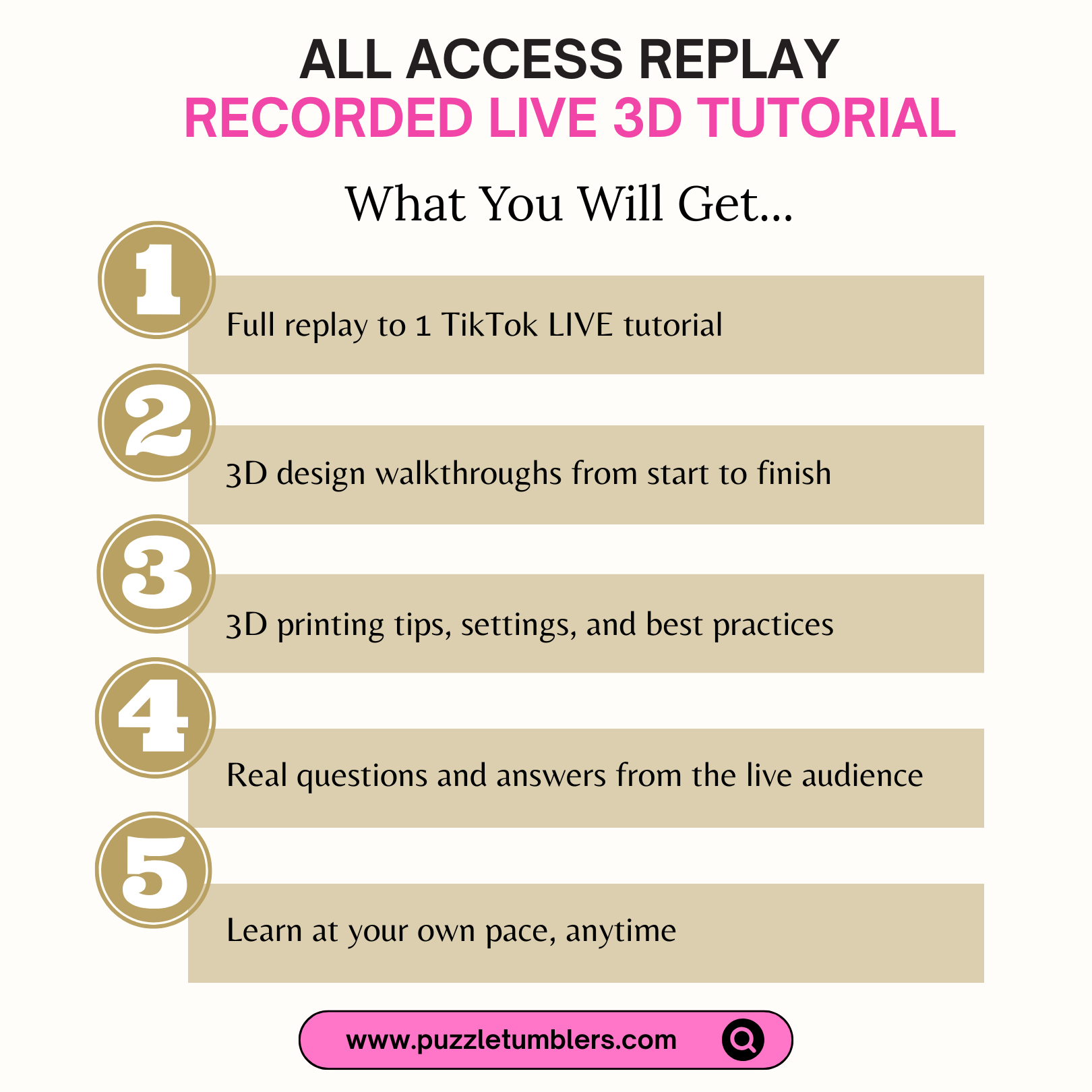 🎥 Recorded Live 3D Printing Tutorials (Replay Access ONLY) 🖨️