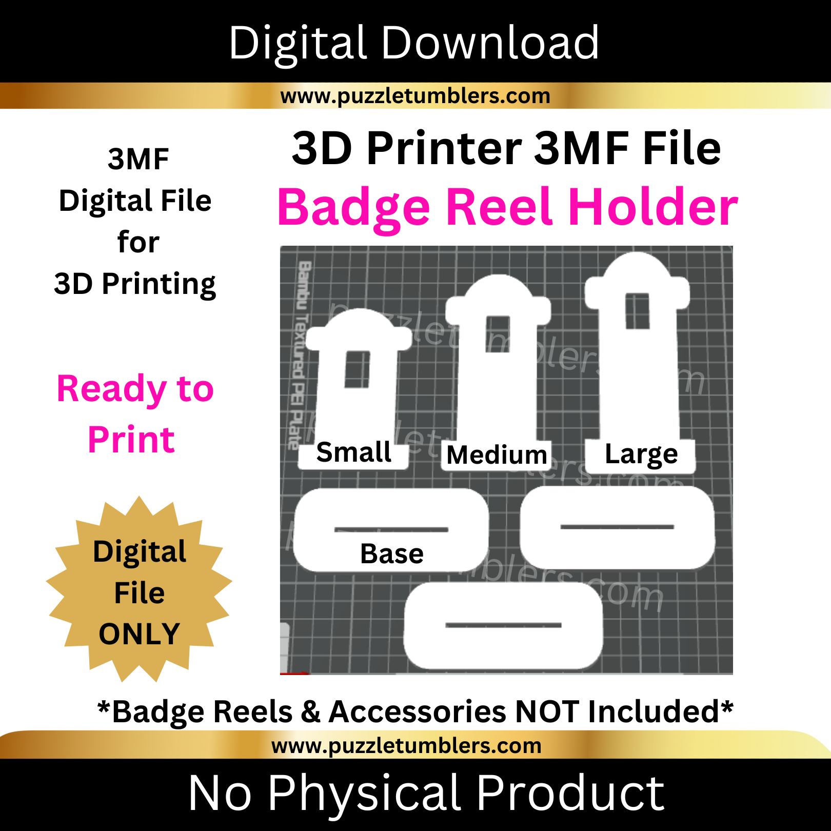 DIGITAL (3MF File): Badge Reel Display Stand Trio (Small, Medium, Large)