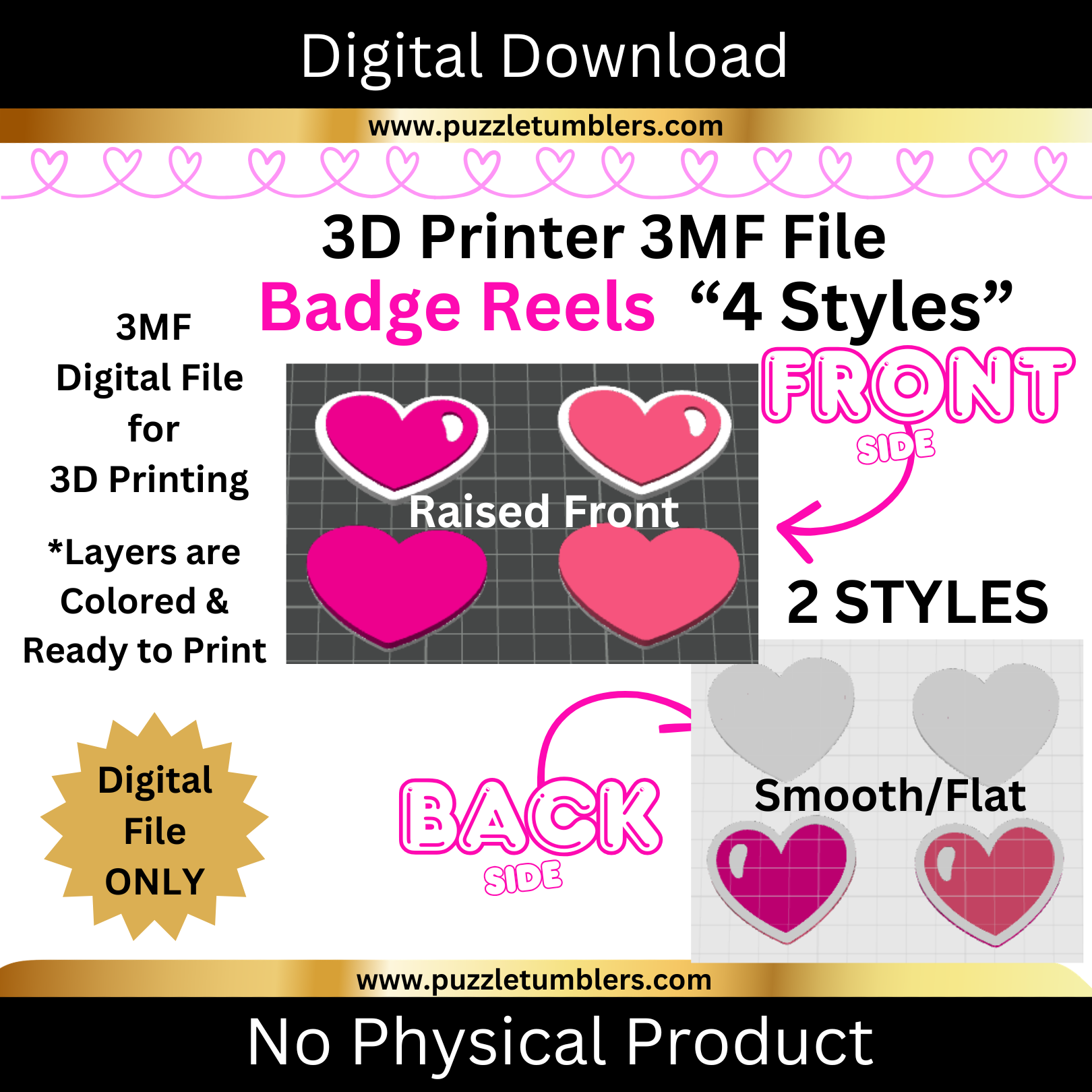 "Valentine Theme" Badge Reels - 2 Styles | 3D Print File (3MF) | Desk Organizer | Digital Download