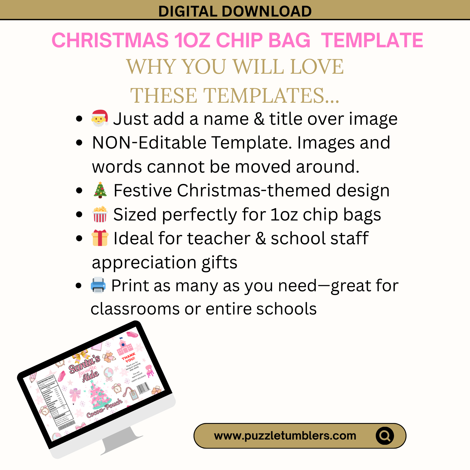 ✨ Customizable 1oz Christmas Chip Bag Template | Teacher & School Staff Gift | Digital Download ✨