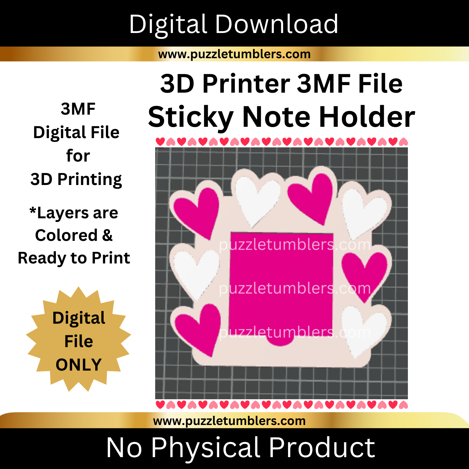 DIGITAL (STL & 3MF Files): Valentine's Day Heart - Themed Sticky Note Holder