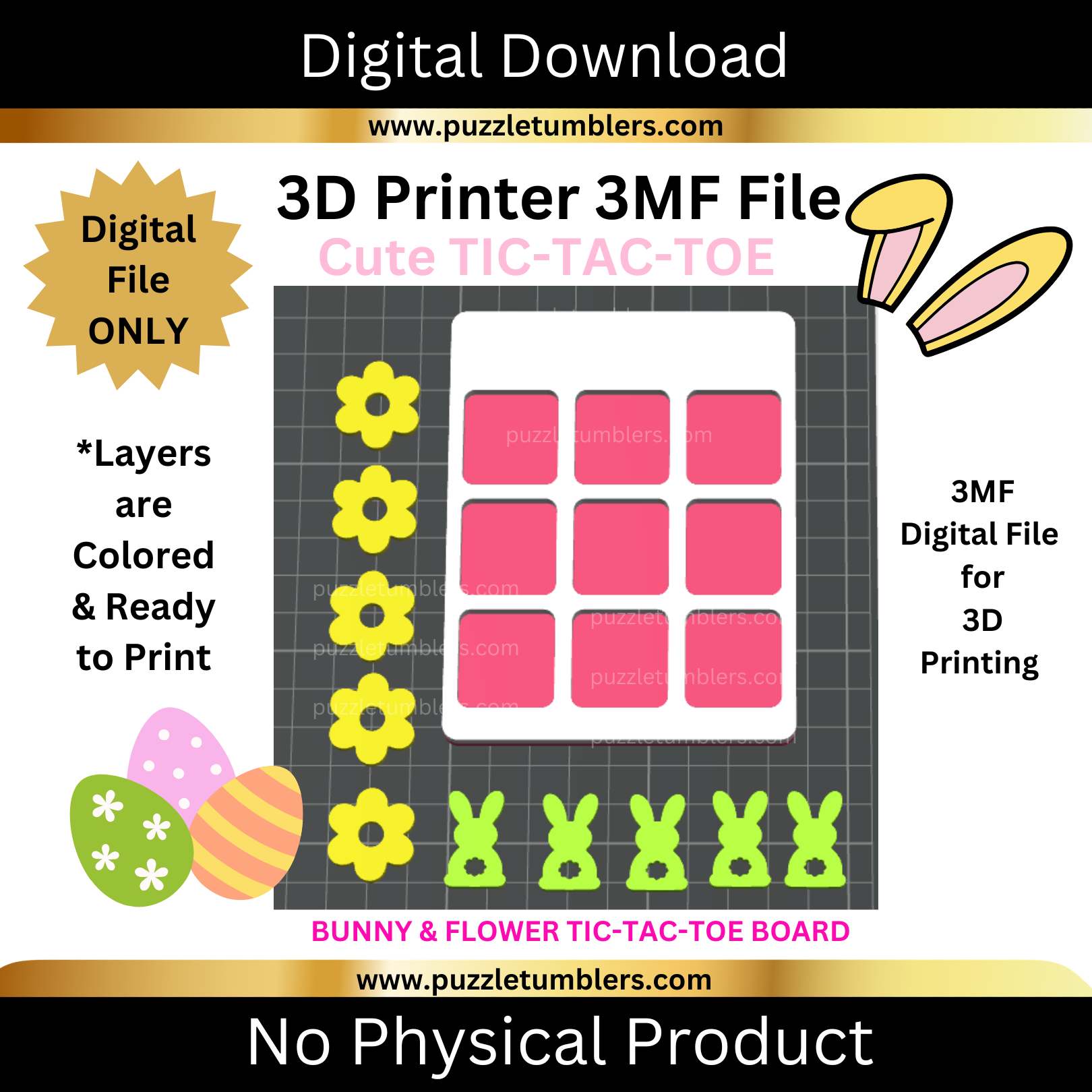 "Bunny Theme" Tic-Tac-Toe Game | 3D Print File (3MF) | Desk Organizer | Digital Download