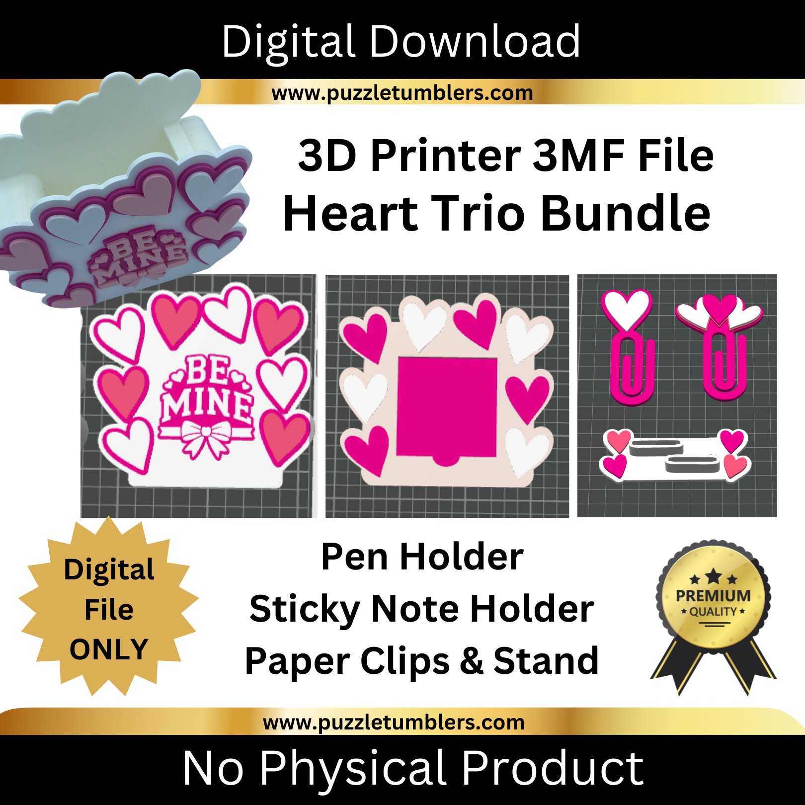 "Valentine Theme" Heart Trio Bundle | 3D Print File (3MF) | Desk Organizer | Digital Download