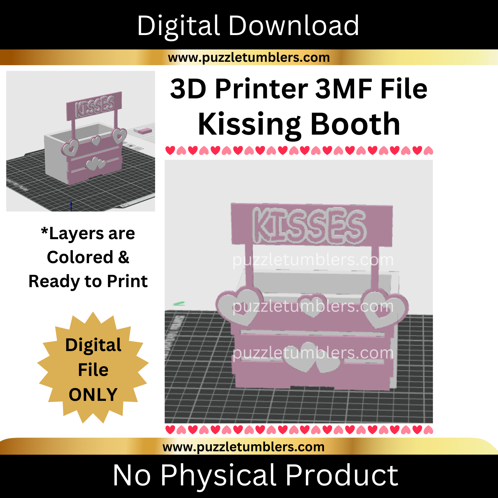 "Kissing Booth" Pen/Candy Holder | 3D Print File (3MF) | Desk Organizer | Digital Download